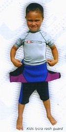 Originally designed for use as a layer under the wetsuit, rash guards worn alone also provide great protection for a day in the sun and wind. All Aleeda suits are manufactured in Newport Beach, CA USA The kids/infants rashguards are especially for the little water lover - these rashguards are REALLY small so please order a size bigger then you think your infant/kid will wear. Kids Sizes Available: XXXS/4, XXS/6, XS/8, S/10, M/12, L/14, XL/16 Sizing Examples: A size Small fits an infant that is 4 months old (approximately 15-25lbs). A size Large fits an infant/kid about 37lbs - 52lbs and about 3-4' tall A size XL for an infant/kid about 52lbs - 62 lbs and about 4' tall If you would like more assistance in choosing the correct size please call us with the height and weight of the person who will be wearing the rashguard.
